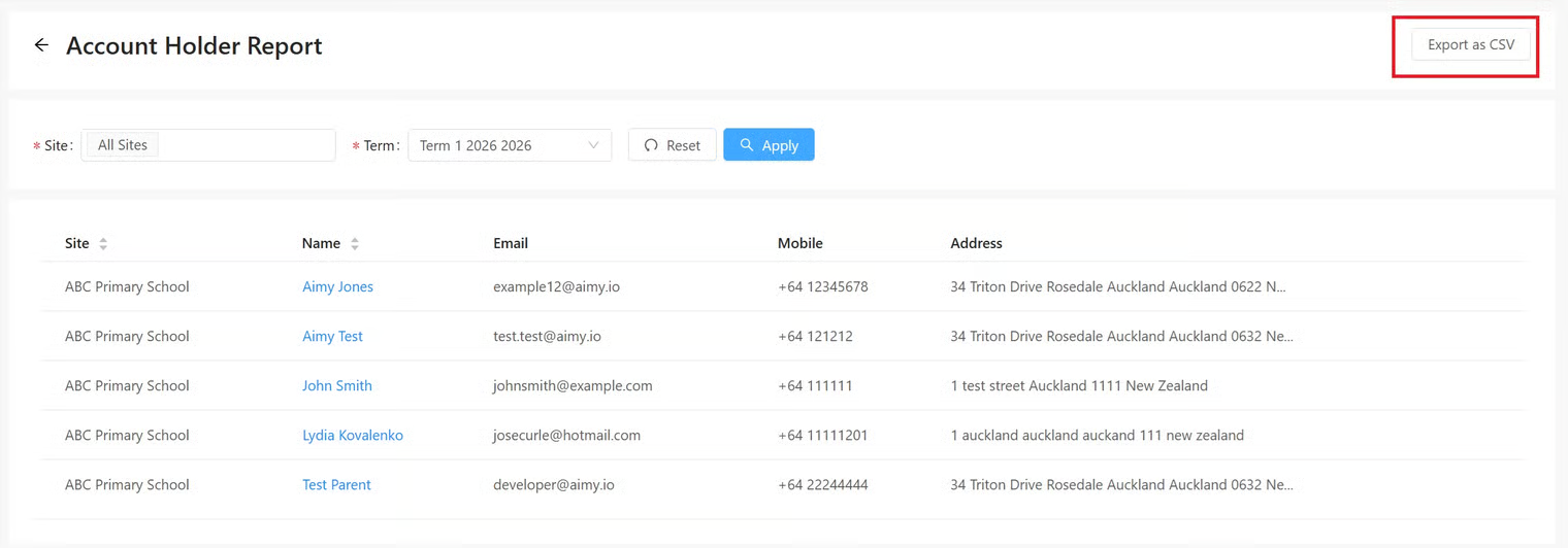 The Attendee Report displays a list of attendees linked to a selected site. This report includes information included in attendee profiles, such as name, gender, age etc. The report can be exported to a CSV file by clicking the 'Export' button ...