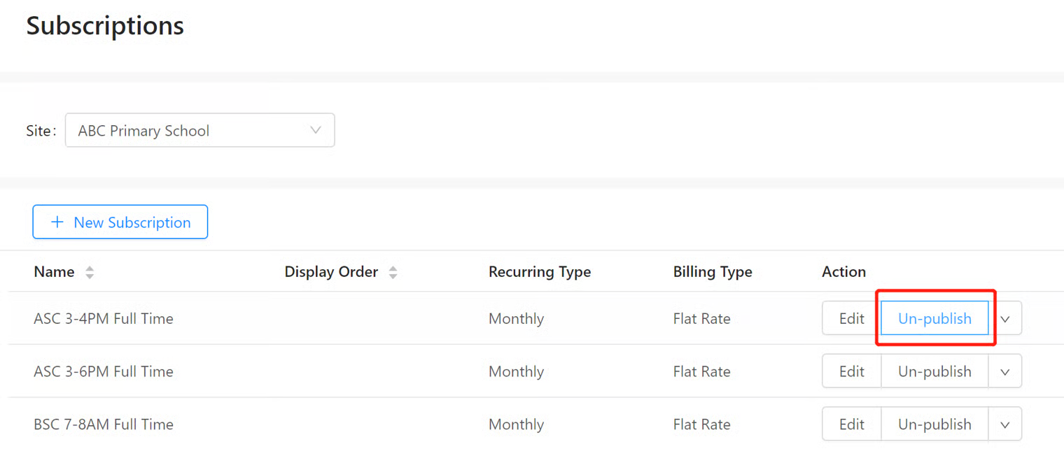 A subscription needs to be unpublished before it can be fully edited or deleted.