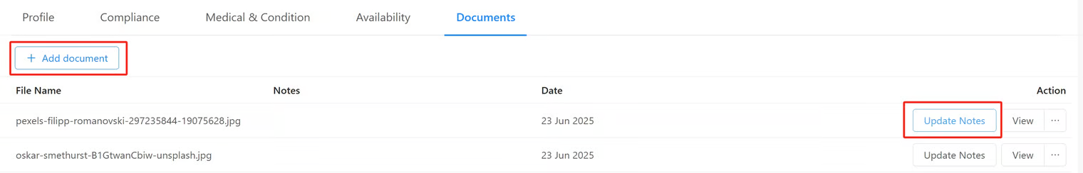 Apart from certificates and qualifications, additional documents related to a staff member can be stored under the 'Documents' tab.