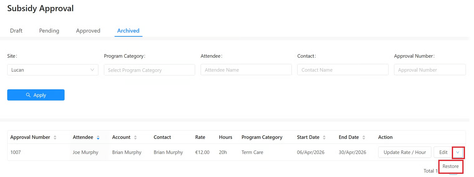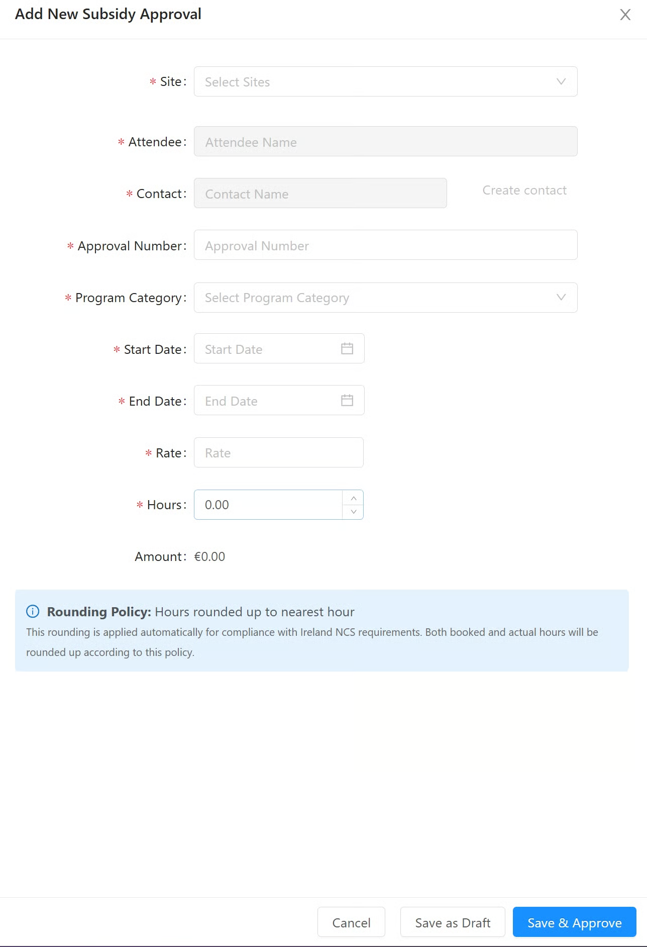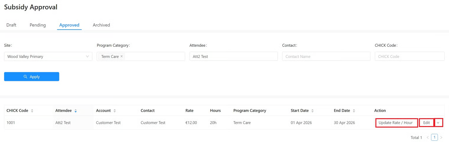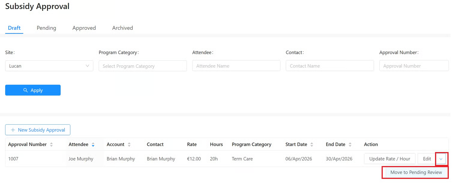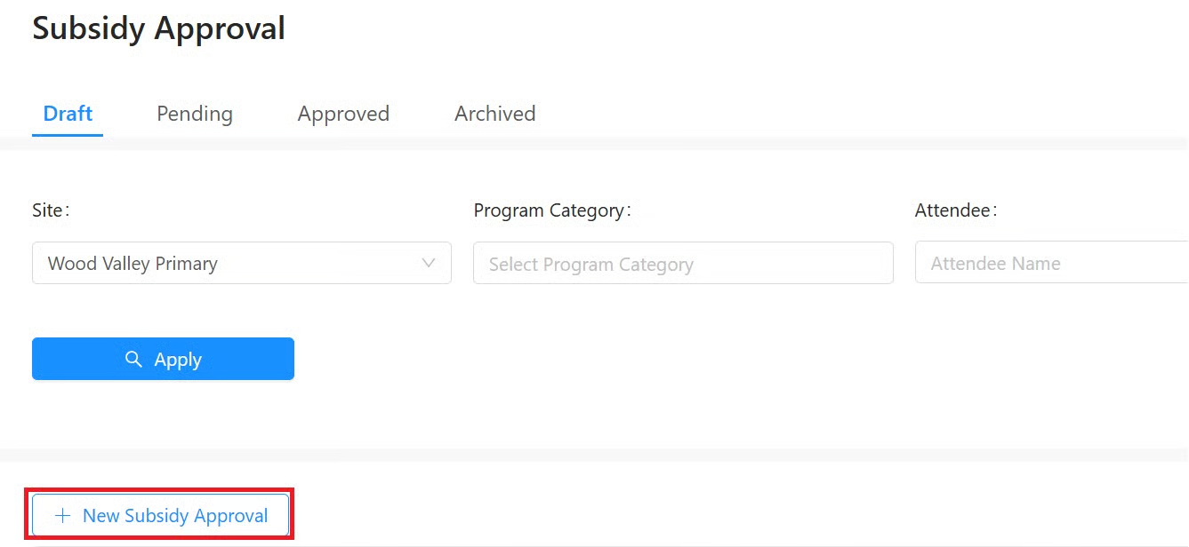 To add a new approval, click '+ New Subsidy Approval' in the middle of the page.