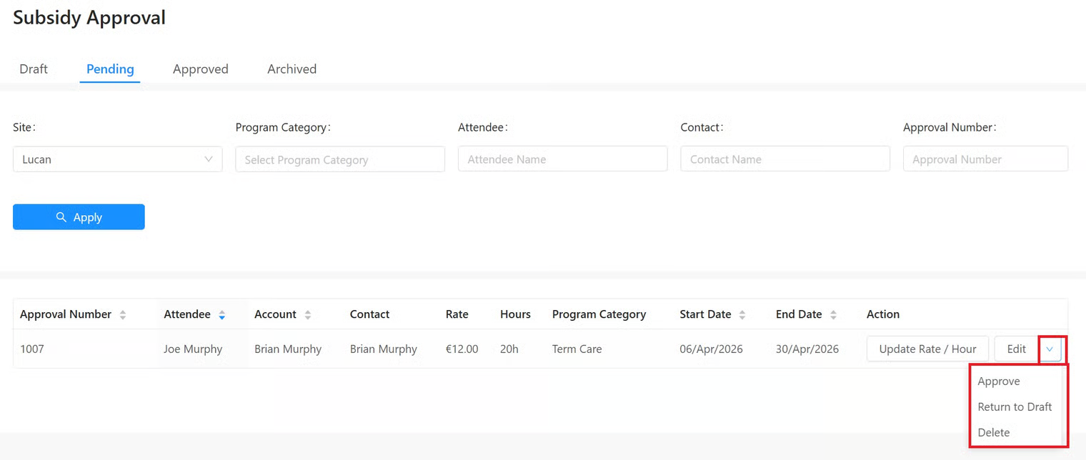 Click 'Save & Approve' to move the approval to the approved tab, or 'Save as Draft' if further changes are to be made.