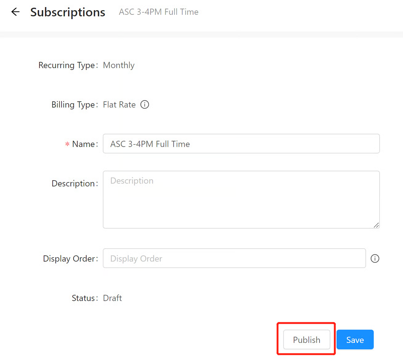 Once all details have been finalized, make sure to publish the subscription so it can selected during the booking process.