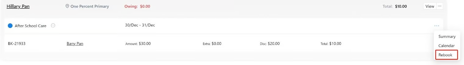 Billing frequency (one-off, weekly, or monthly) of a confirmed booking can be updated in the Booking Manager.
