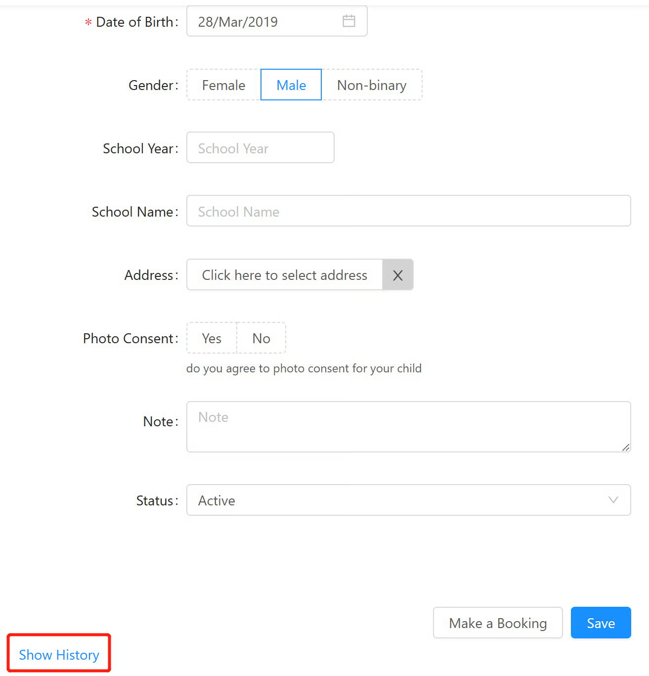 Admin users are able to view logs for changes made to an attendee by going to the attendee profile, then click ‘Show History’ as shown below.